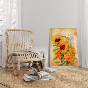 Plakat Letnie Słoneczniki to połączenie kolorów, które rozświetli każdy dzień. Wyobraź sobie, że w porannym świetle, tuż przed poranną kawą, napotykasz na ten zjawiskowy obraz. Jego żywe odcienie żółci i pomarańczy są niczym krople rosy o poranku – świeże, radosne, pełne energii. Każdy szczegół, od płatków kwiatów po liście, zostały uchwycone w sposób, który oddaje esencję letnich dni, gdy natura maluje swoje obrazy najsubtelniejszymi barwami.