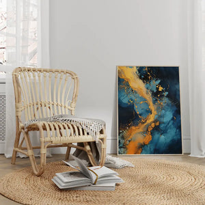 Niech Twoje ściany ożyją dzięki Plakatowi Niebieskie Impresje, który tworzy niepowtarzalną aurę w każdym pomieszczeniu. Kolory płyną jak rzeka, tworząc intrygujące kompozycje, które zapraszają do refleksji. Mieszanka intensywnego granatu i jasnego błękitu, wzbogacona odrobiną złota, brzmieć będzie jak szum fal na wzburzonym morzu. To nie tylko dekoracja – to prawdziwy kawałek sztuki, który potrafi uchwycić uwagę wielu osobowości, od minimalistów po poszukiwaczy kolorów i emocji.